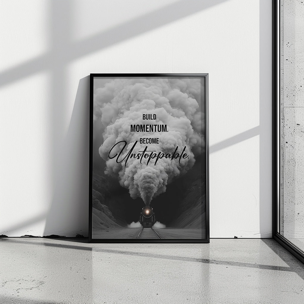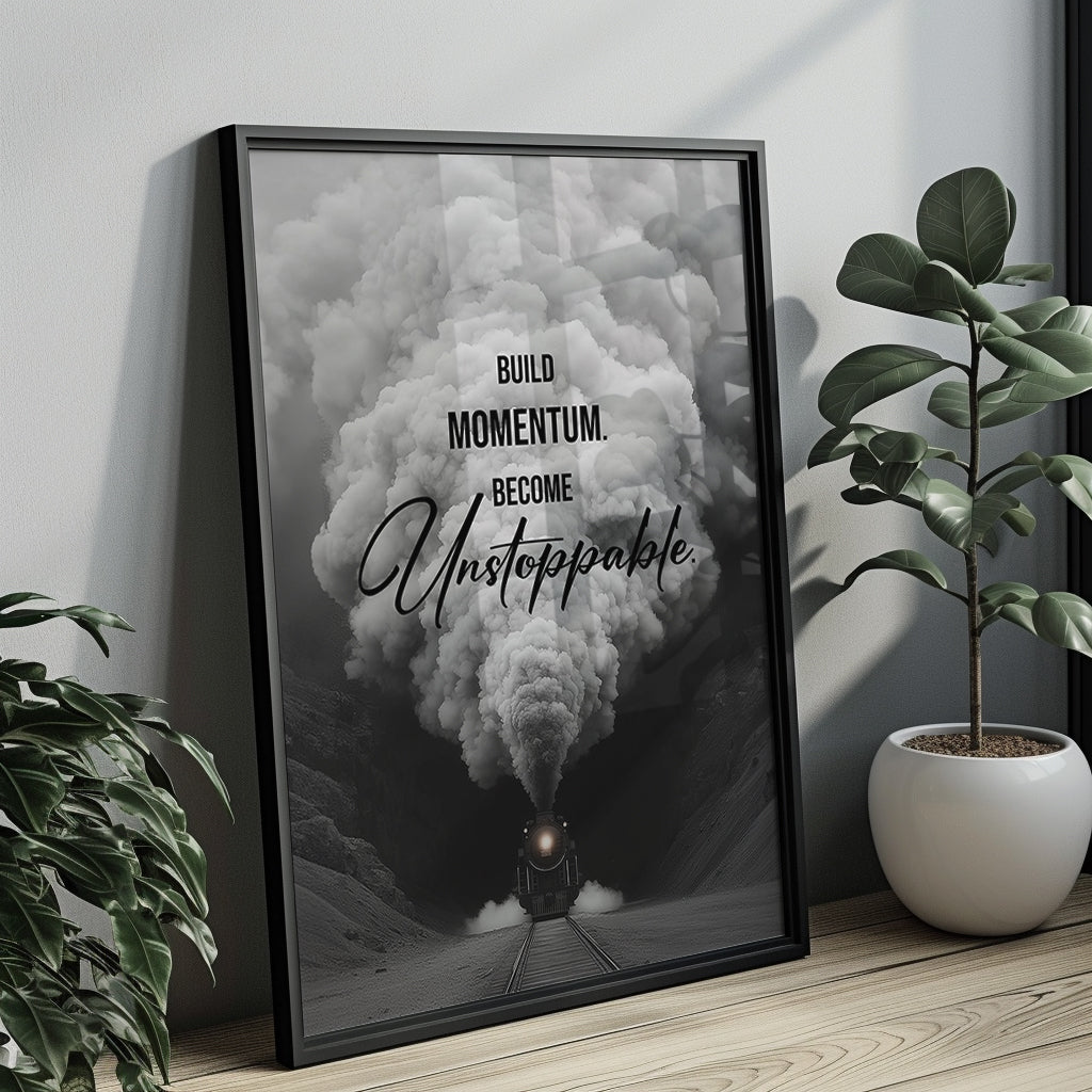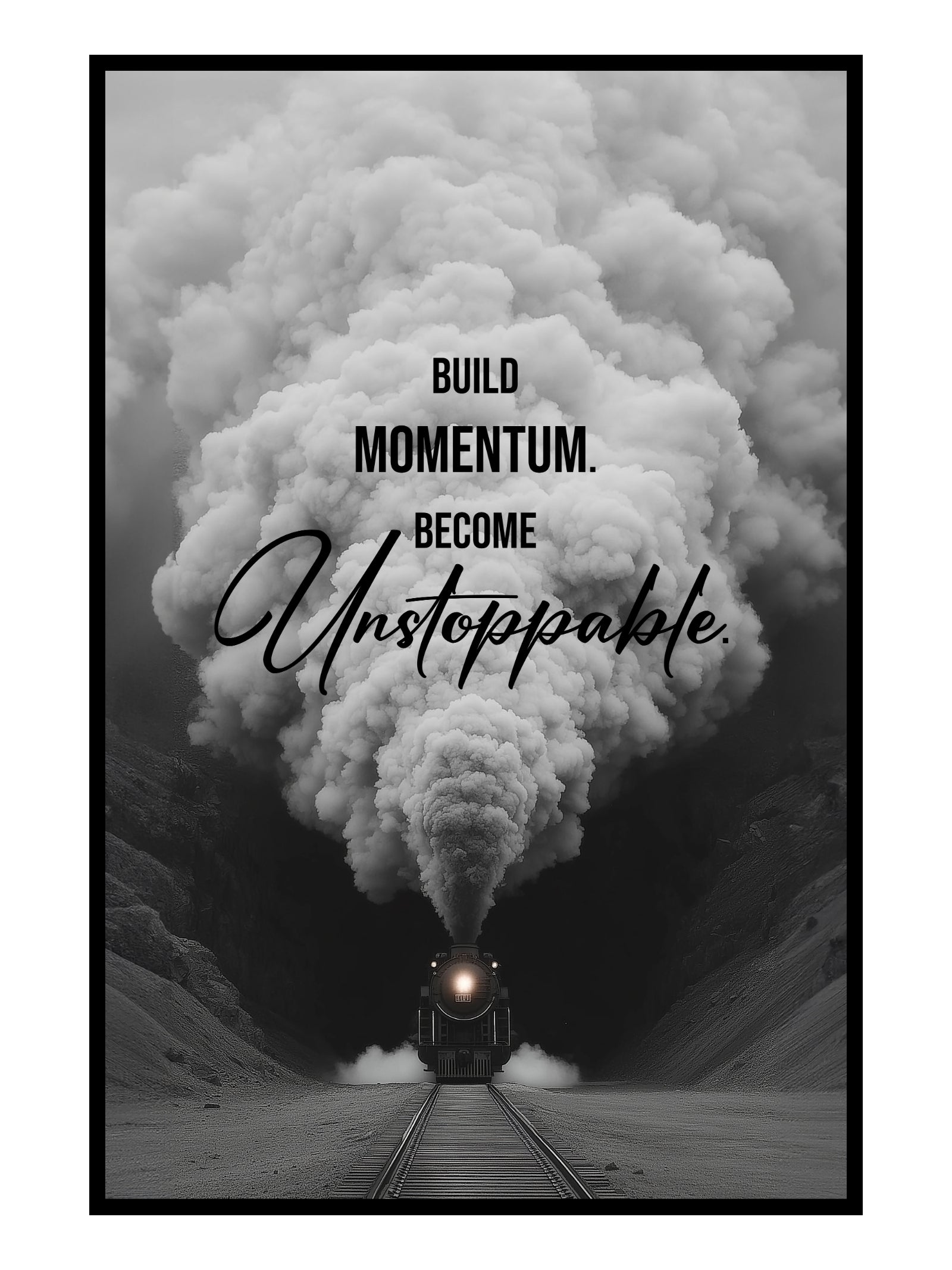 "Build Momentum. Become Unstoppable." Motivationsposter für deinen Fokus