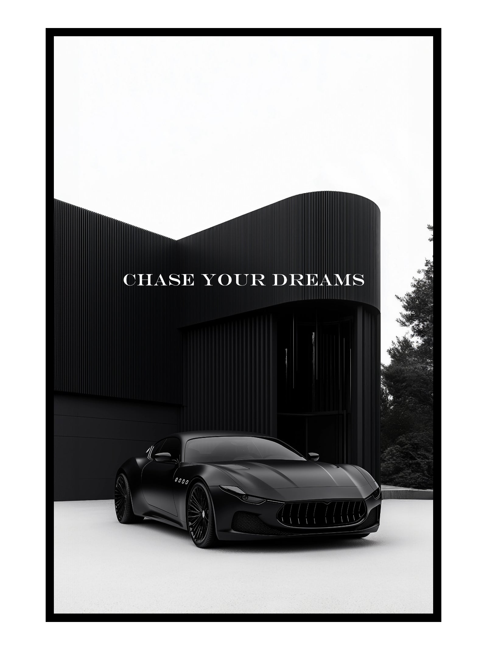 "Chase Your Dreams" Luxus-Sportwagen Motivationsposter