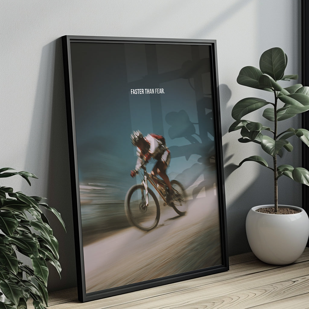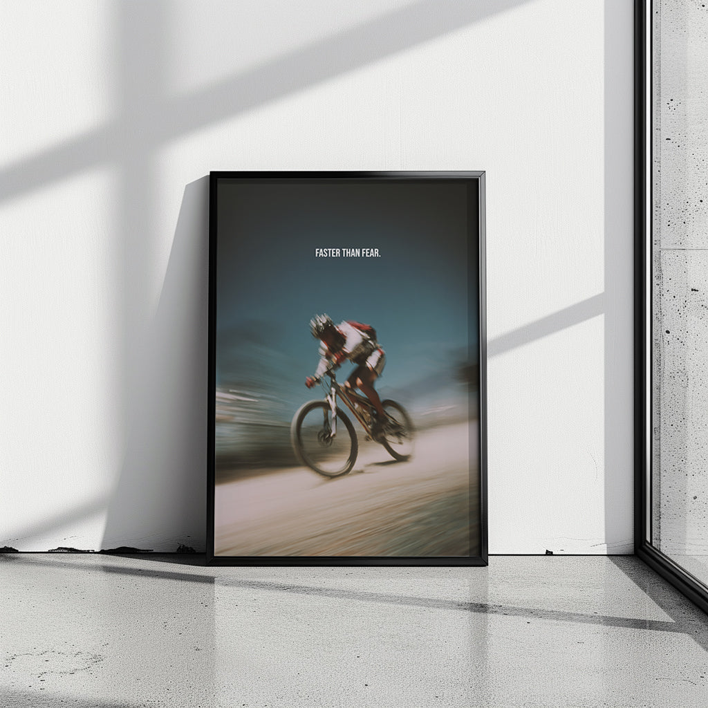 Motivationsposter Mountainbike – „Faster than Fear“