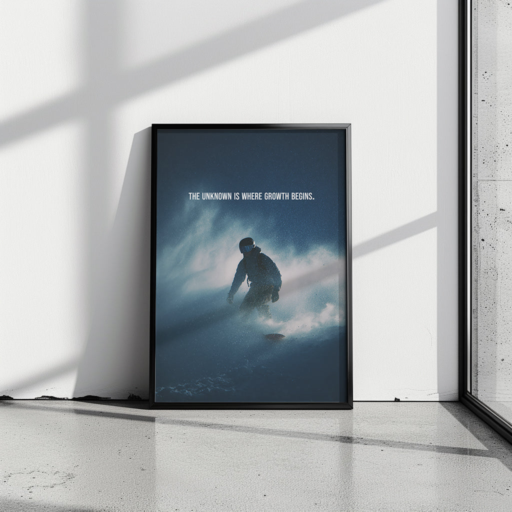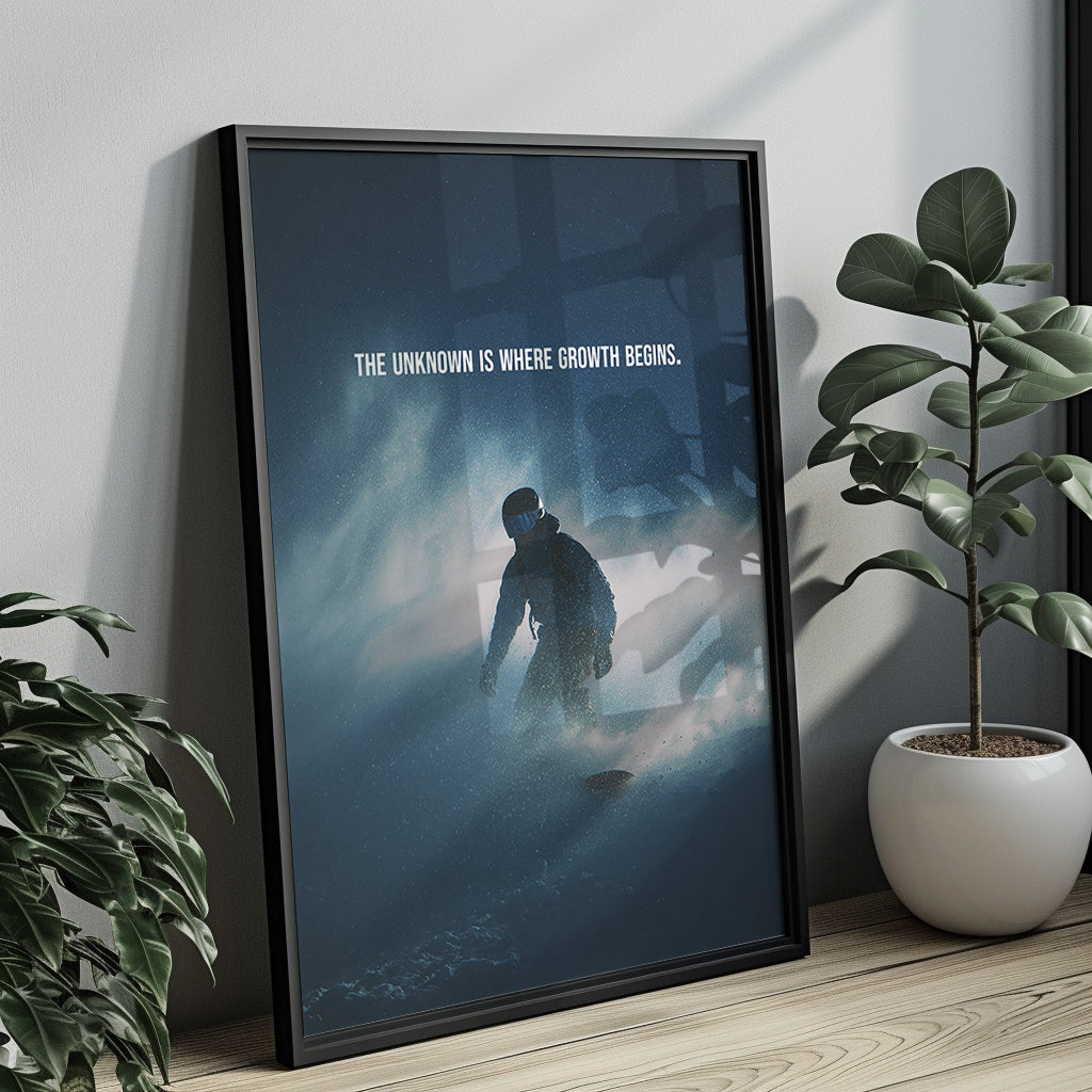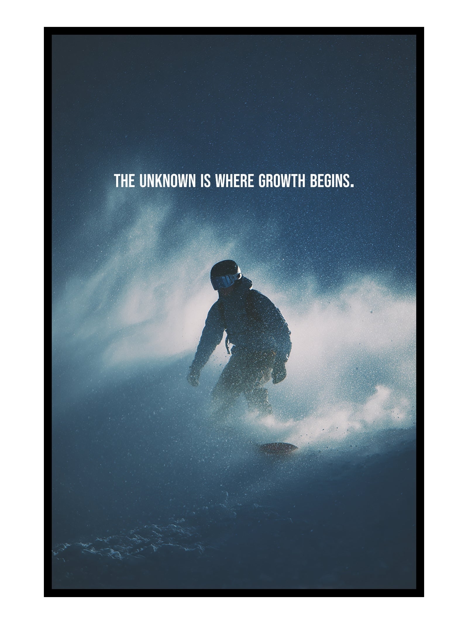Motivationsposter Snowboard „The Unknown is where Growth begins."
